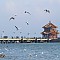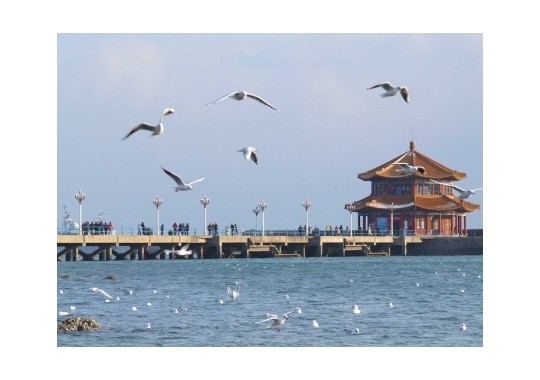 청도시 시남부 서부, 청도만중부에 위치해 있다. 시중의 가장 번화한 상가인 중산로와 일직선에 놓여있는 잔교의 길이는 440M에 달한다. 해안의 앞부분이 바다까지 연장된 이 잔교는 1891년에 처음으로 건설되었다. 잔교의 남쪽에는 반원형의 방파제가 있는데 그 안에는 "회란각"이라 불리는 민족특색의 2층 8각루가 세워져 있다. 이 회란각의 옆에 다가서면 뒤에 뒤를 이어 밀려드는 세찬 파도를 감상할 수 있다. "비각회란"은 "청도 10경"중의 하나이다. 잔교의 북쪽에 위치한 "잔교공원"에는 관상용 꽃이나 나무, 푸른 소나무와 풀들이 무성하게 자라 있으며, 하늘과 바다의 경치를 앉아서 구경할 수 있는 돌 의자도 있다. 잔교의 서쪽에 줄지어 서있는 가로등은 활짝 핀 목련꽃을 방불케 한다. 주위의 경관과 혼연일체를 이룬 잔교는 청도의 상징과 징표로 되고 있다. 이곳은 누구나 꼭 가볼만한 곳이다.