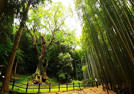 아마가세 명소 '지온폭포' 폭포에 이무기가 살고 있다는 전설이 있으며 2단으로 이루어져 있어 박력넘치는 경관을 자아내는 지온노타키는 큐슈에서 폭포의 뒤를 통과할 수 있는 단 4곳의 폭포 중 하나이다.