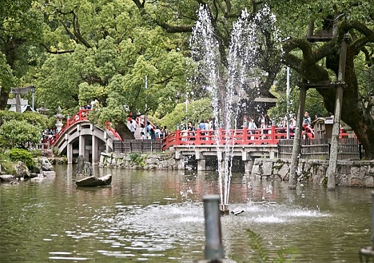 일본 텐만구(天滿宮)의 총본산지로, 학문의 신으로 유명한 스가와라노 미치자네(菅原道眞)를 모신 곳이기도 하다. 메이지 시대에 다자이후진자(大宰府神社)가 되었으며, 현재는 다자이후텐만구로 불리고 있다. 수천그루의 매화나무가 아름다운 이곳은 일본에서 유명한 학문의 신을 모시고 있는 신사로, 일본의 중요 문화재 중 하나. 학문의 신을 모시고 있는 신사답게 입시철이면 합격 기원부적을 사기위해 일본 전역에서 수만명의 인파가 몰려든다는데 만지면 공부를 잘하게 된다는 소 모양의 동상은 이미 많은 이의 손을 거쳐 반질반질 윤이 난다.