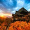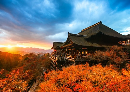 교토의 상징으로 유명한 사찰인 청수사는 778년에 창건되었으며 나무 기둥 위에 아슬아슬하게 세워진 본당의 모습이 이채롭다.